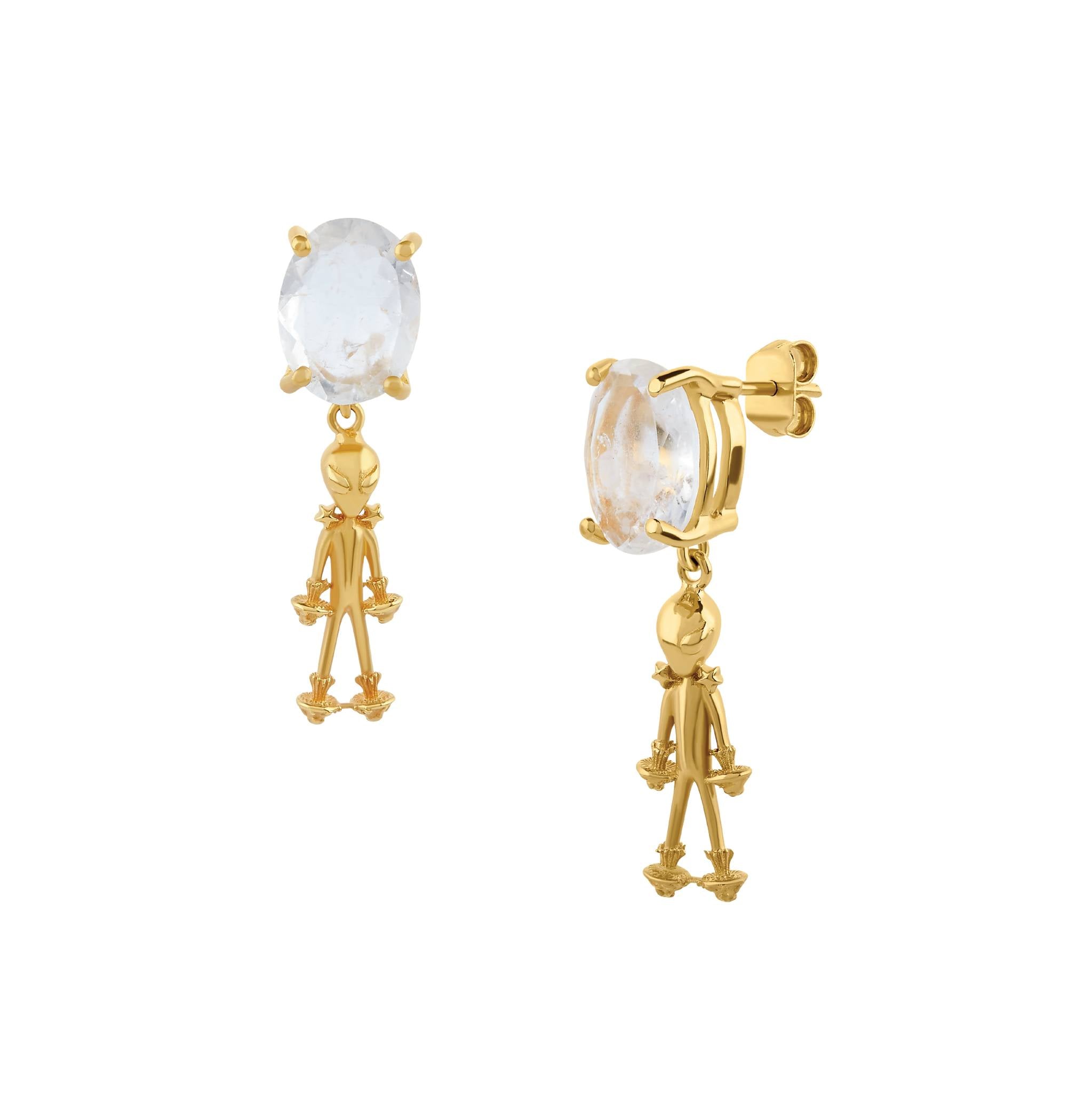 Aretes Alien completo con ópalo hialita fluorescente